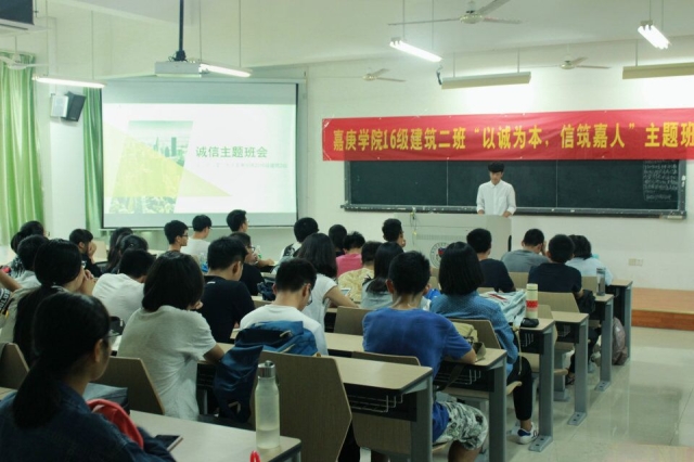 在2016-2017学年第一学期期中考试来临之际,为了严肃考风考纪、加强学风建设,营造文明诚信考试氛围,同时也为了提高同学们的思想素质和道德修养,建筑学系2016级各班在10月24日至10月28日期间,分别组织召开了诚信教育主题班会。