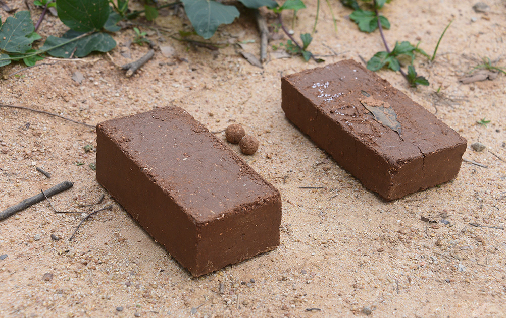 那么,抹粉又是为何?原来,是为了土砖脱模时更顺畅。不过,鉴于草木灰和滑石粉相对难以筹备,大学生们在夯土模具上抹了痱子粉,“效果也不错。”