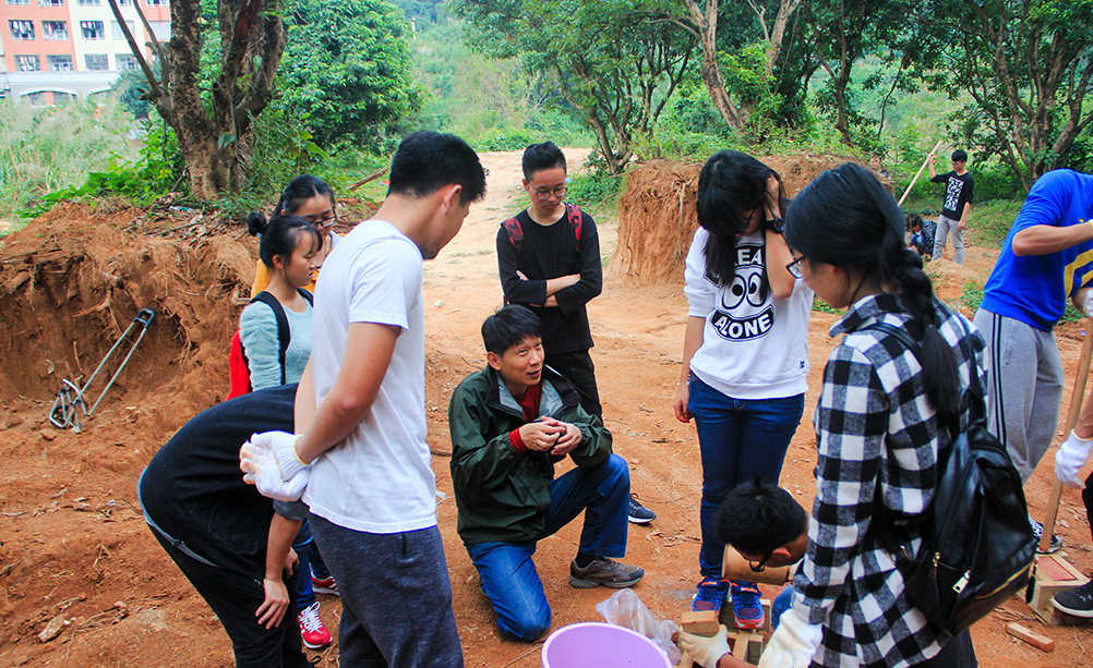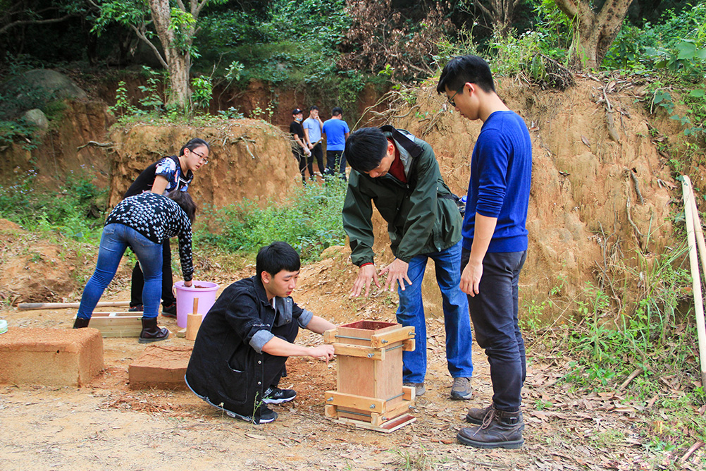 当然不是!“吃土”算什么,夯土才厉害,他们是我校古建筑联盟的成员,12月4日,在建筑学系副教授、来自台湾的专任教师李鎨翰的带领下体验古代夯土、夯墙技术。手制木框,也就是模具,然后运土、装土、捶打、压实、倒出土块……师生20多人分三组,在菜地里忙得热火朝天。