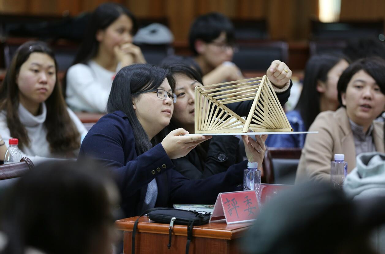 比赛中,参赛队伍围绕“阅读场所、生态营造”的主题,充分发挥专业特长,探讨空间与人的互动关系,设计出一个校园互动空间。同时,为秉承“生态环保”的概念,本届比赛更加强调作品与建筑环境的相互协调性,要求方案尽量节省用料,达到用材合理和结实承重的统一。比赛分为作品视频介绍和评委问答环节。