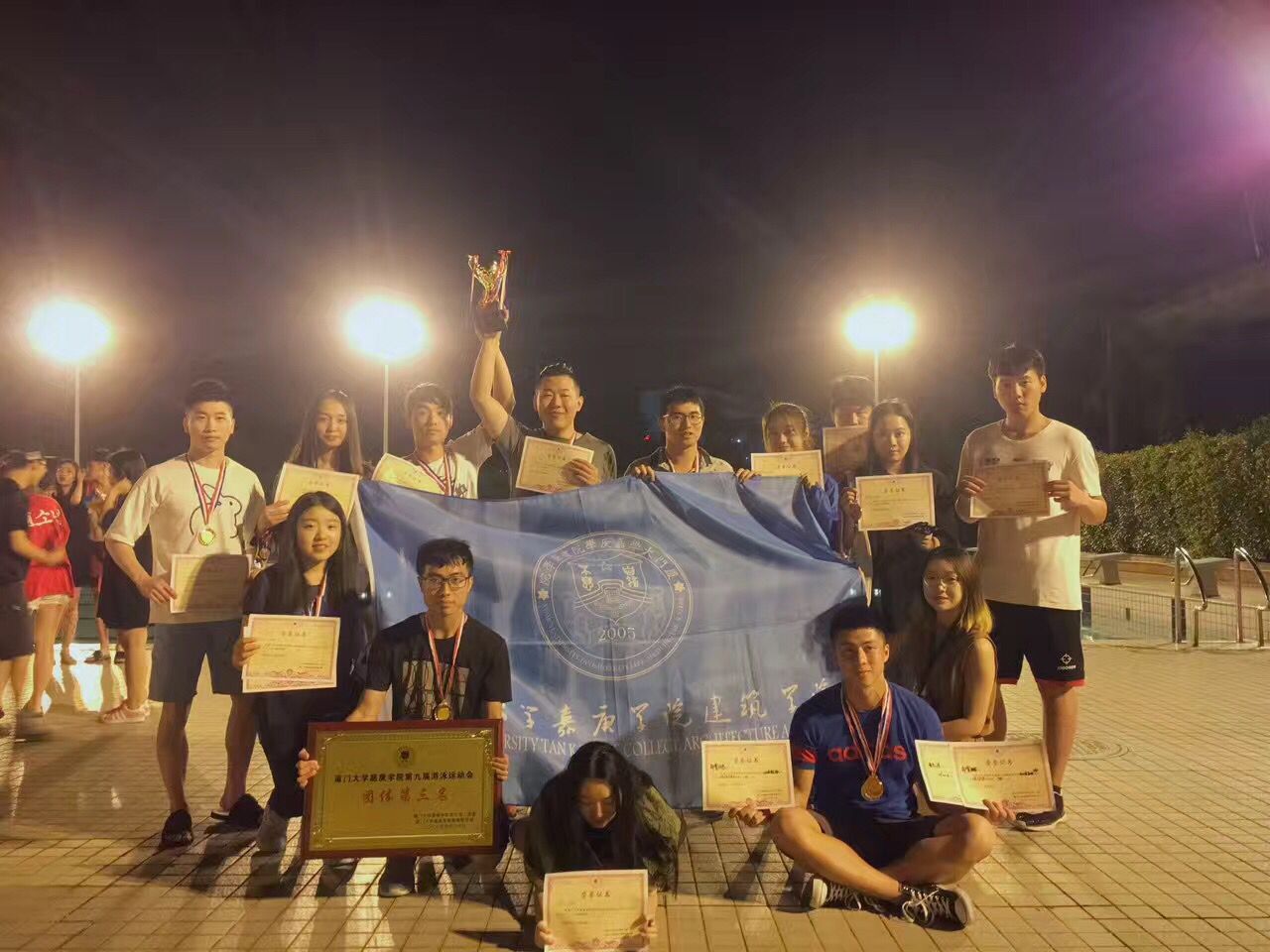 16时,比赛正式开始。“嘟嘟嘟……”,随着裁判员哨音响起的瞬间,队员们奋力劈波向前,溅起一串串水花。队员们用尽全身的力量你追我赶,奋力前进。“加油!加油!,快快快,快触壁了,”现场呐喊声不绝于耳。”到最后的全场气氛高潮迭起。经过下午、晚上两阶段的比拼,本届游泳比赛在大家的欢声笑语中落下帷幕。疲劳却兴奋的队员们脸上个个洋溢着自信的笑容。最终,我院运动健儿们经过奋力拼搏,荣获了团体第三名的好成绩。