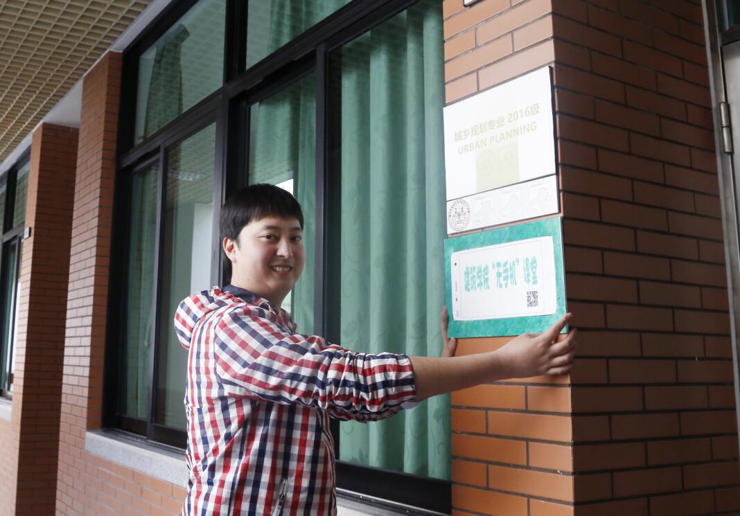 张敏是我院2016级建筑一班的班长,这个学期,他承担了一项新的任务,那就是,保管班级的手机存放袋。每天上课前10分钟左右,张敏便早早来到教室,从背包里取出一件特殊的“行李”,用4条牢固的铁环,把它悬挂于教室大门的内侧。这是一块如讲台桌桌面大小的布,上面缝有40多个小袋子,每个小袋子上都写有编号。