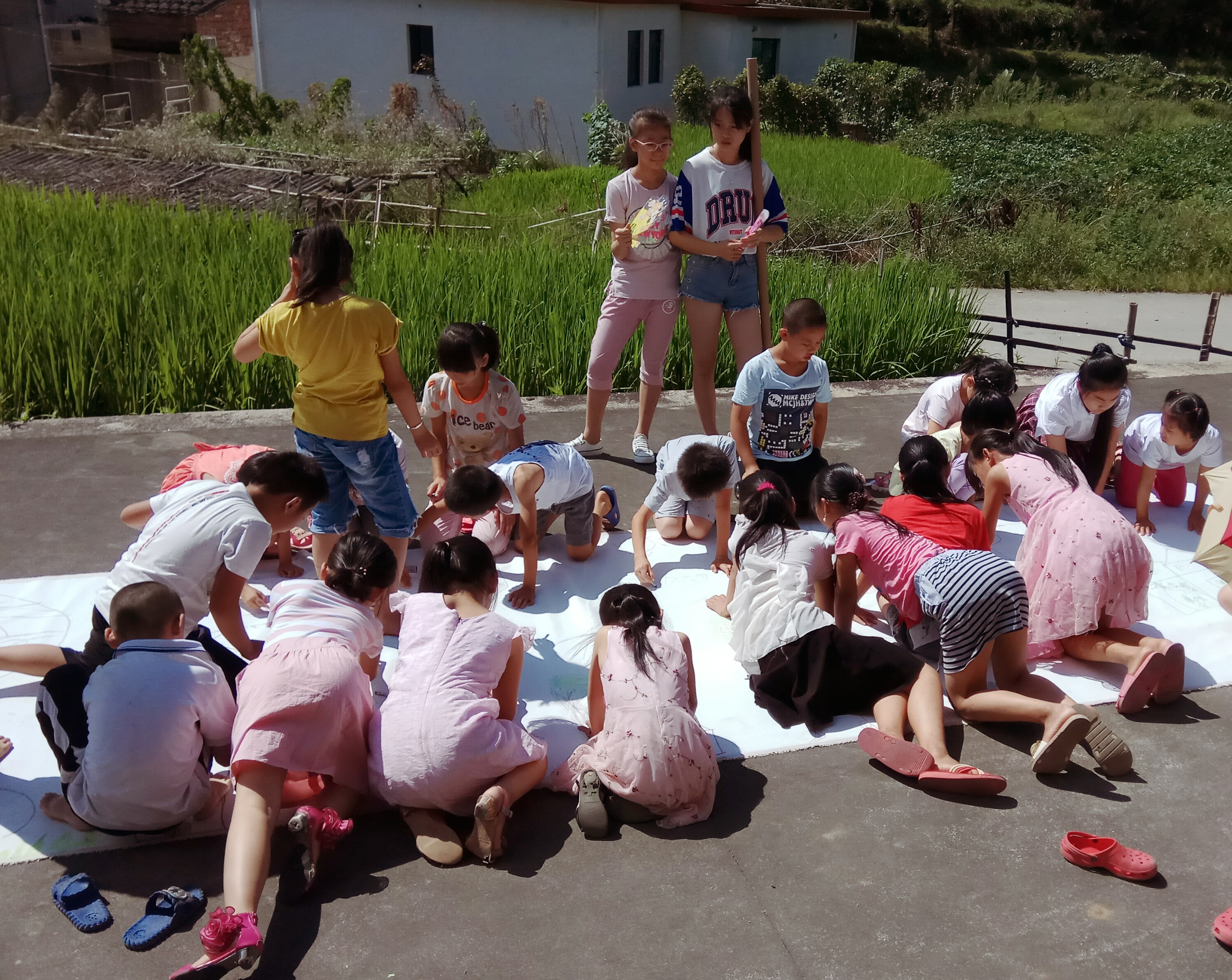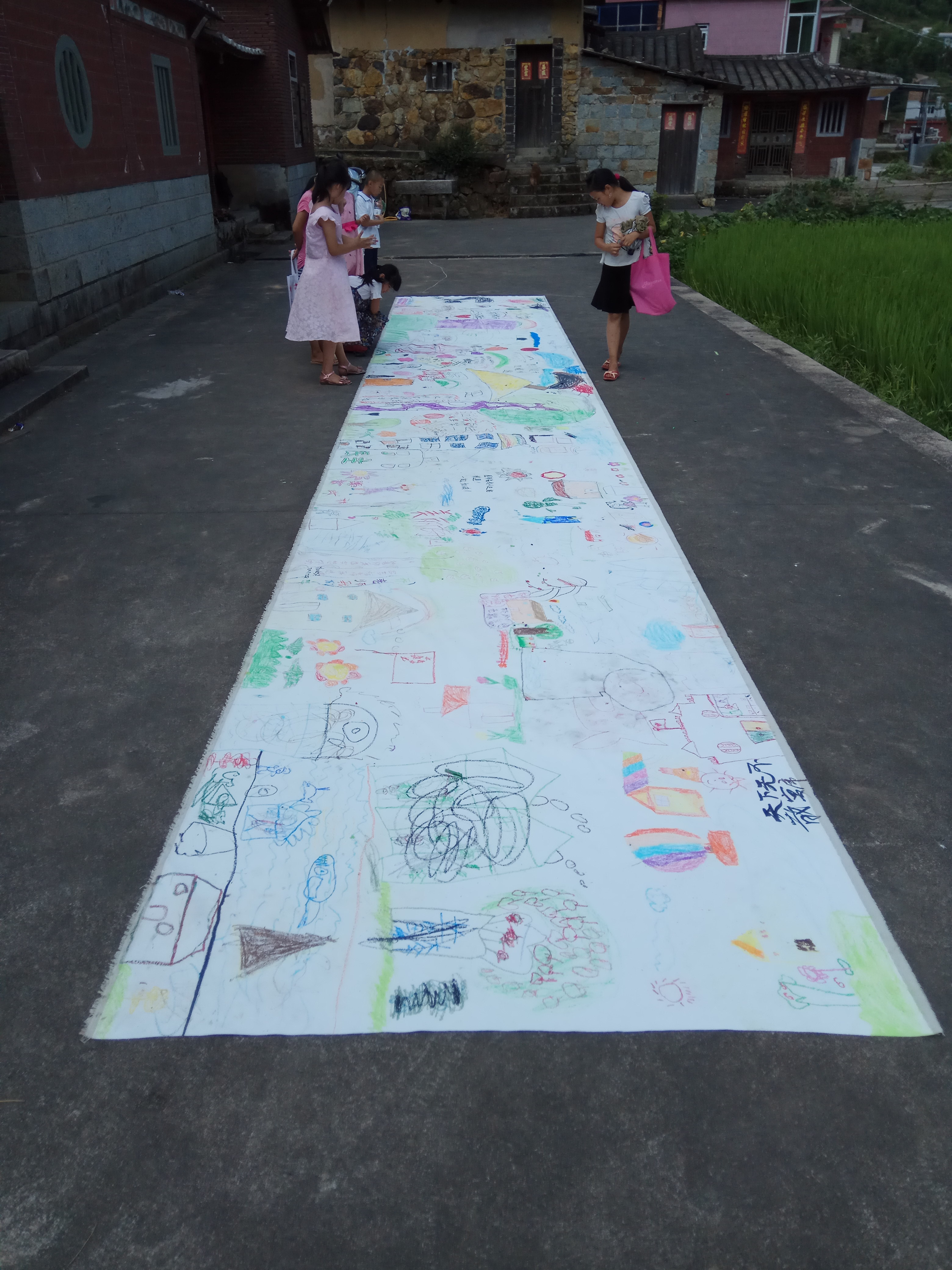 18世纪的德国诗人席勒曾说:“自然只给了我们生命,而艺术则让我们成了‘人’”。8月1日,我院赴诗山镇暑期社会实践小分队在民主村开展了一场别开生面的艺术教育课,与当地热爱美术的学生倾力合作完成一幅十米长的涂鸦绘画,借此向乡村儿童传达艺术的熏陶和感知。