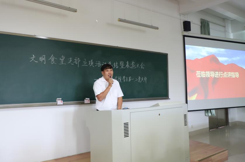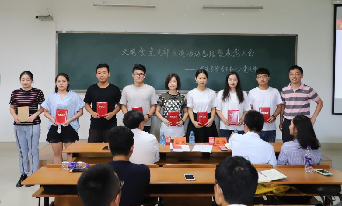 ylzzcom永利总站线路检测资产与后勤管理部和我院学生党支部于10月12日中午,在主楼群2号楼309教室共同开展了“文明食堂”支部立项活动总结暨表彰大会。资产与后勤管理部副部长蒋瑾超老师、资产与后勤管理部佟明春老师、学工部学生党建负责人明召老师受邀参加此次总结会。