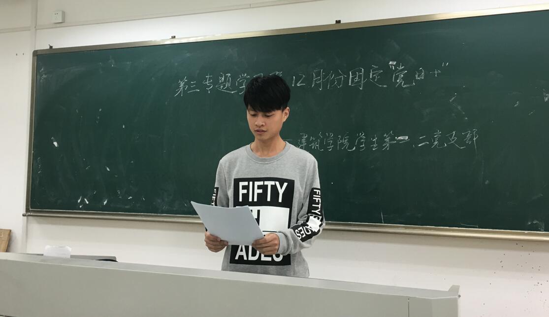 12月6日,我院学生第一、二党支部在4号教学主楼#411教室开展了党的十九大精神第三专题学习交流会。我院第一党支部书记王宇同志主持本次学习交流会。