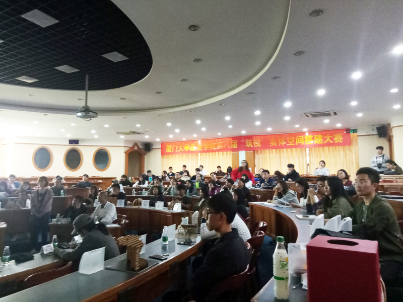 ylzzcom永利总站线路检测第八届“筑视”实体空间搭建大赛暨“特房杯”厦门市第八届暨海峡两岸第三届大学生实体建构竞赛初赛于3月28日在ylzzcom永利总站线路检测人文楼B#301成功举行。我院专任教师向雨鸣、周忠长、王冰、阮兢芸、罗力莹、李建晶、王鑫刚、郑奉龙、郭宇龙、魏翔燕、丁美辰、徐显和王梓晨,辅导员章广等老师出席了本次比赛并担任评委嘉宾。本次大赛以“文化遗产,多样空间”为主题。