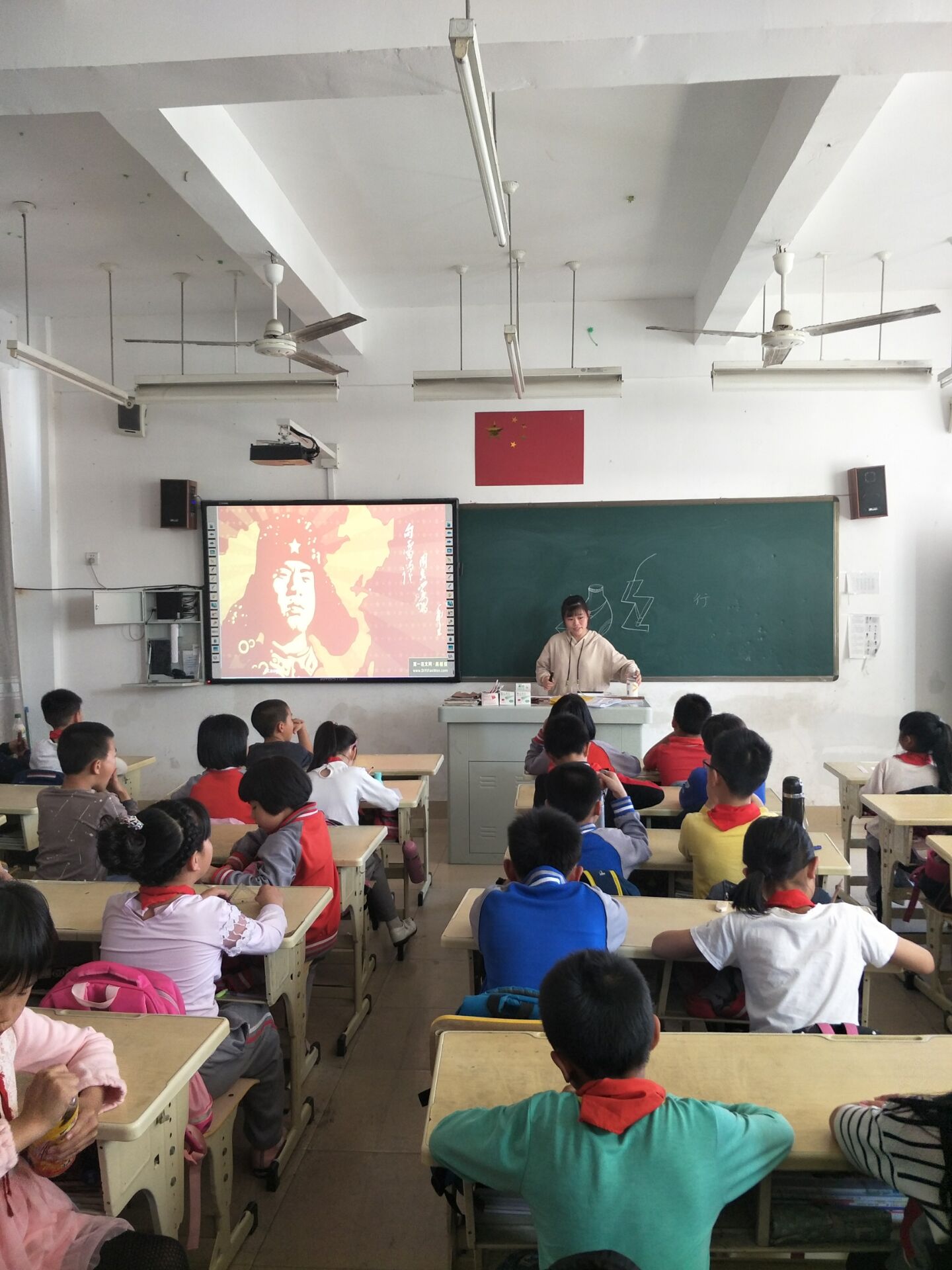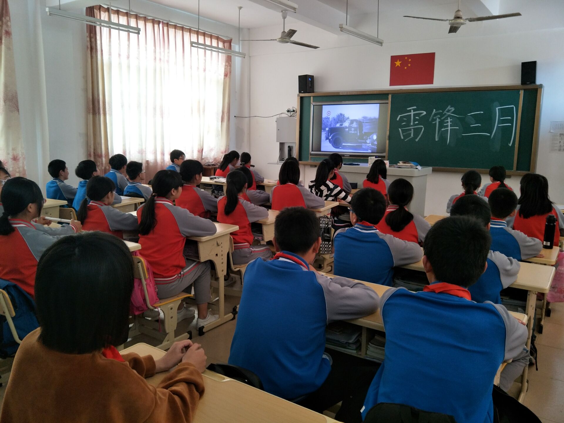 主题班会上,志愿者们带领同学们重温雷锋先进事迹,学习雷锋精神,号召每一个学生利用课余时间,通过书籍、网络等渠道收集雷锋生平事迹,让雷锋精神融入到校园的每一个角落。随后,志愿者们在各班级开展了“讲雷锋故事,学雷锋精神”主题班会,并带领大家高唱《学习雷锋好榜样》,响亮的歌声传遍校园的角角落落,让大家感受到了年轻的力量。