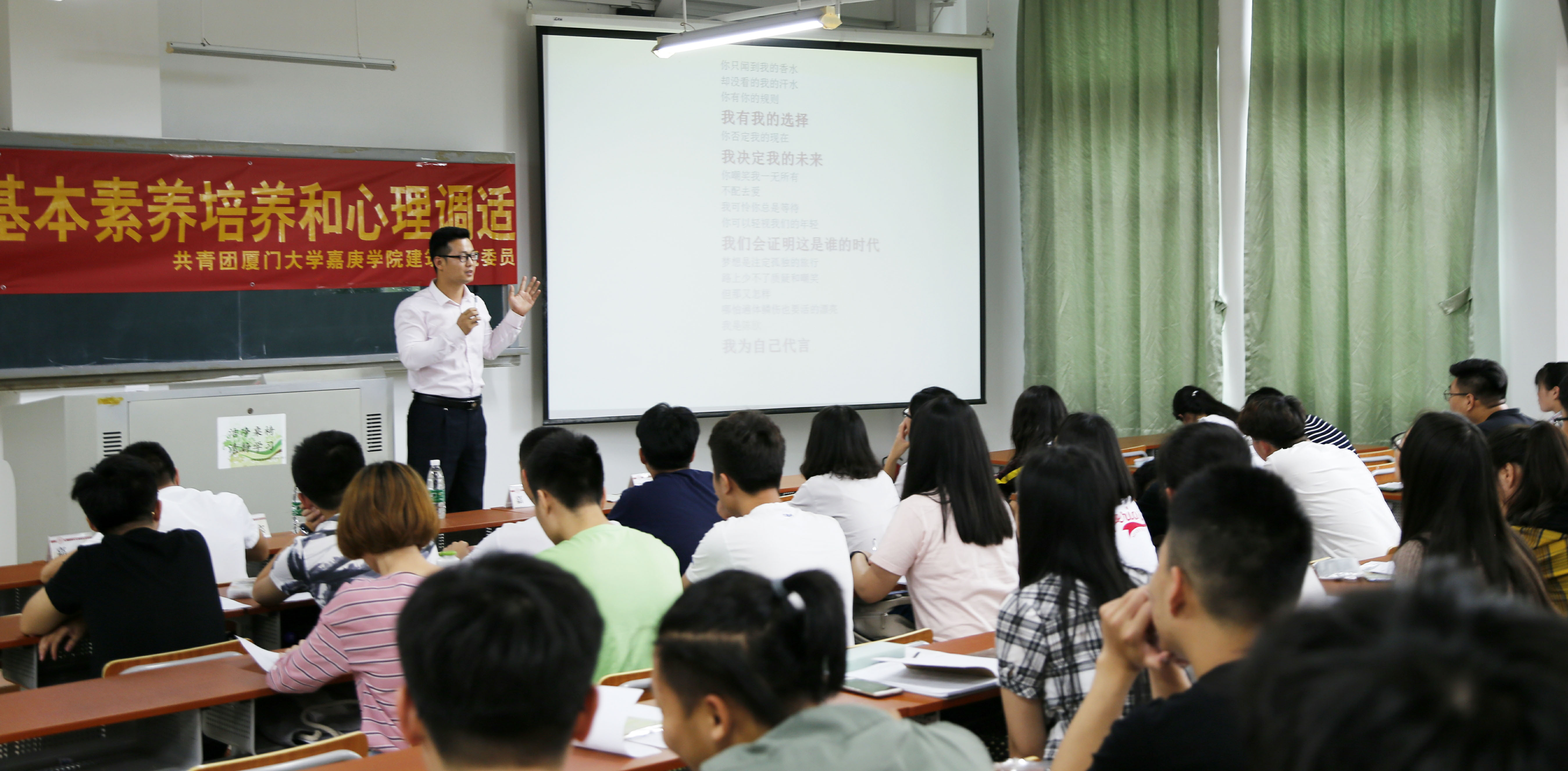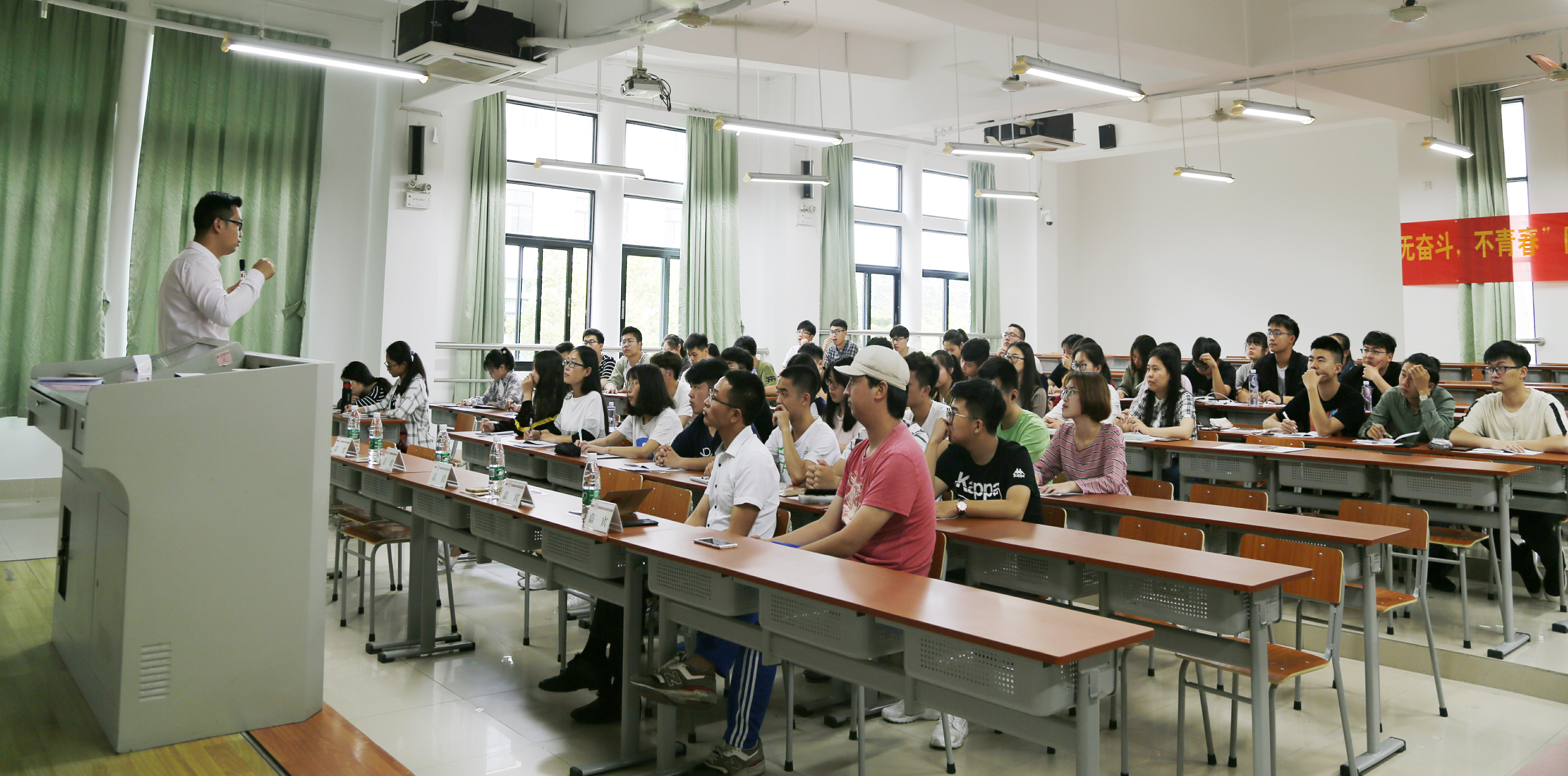 5月9日中午,我院第三期“无奋斗 不青春”团学干部素质拓展训练营第一讲在主教学楼2号楼217教室开讲。学工部孟靖岳老师受邀主讲,我院各班级团学干部参加。