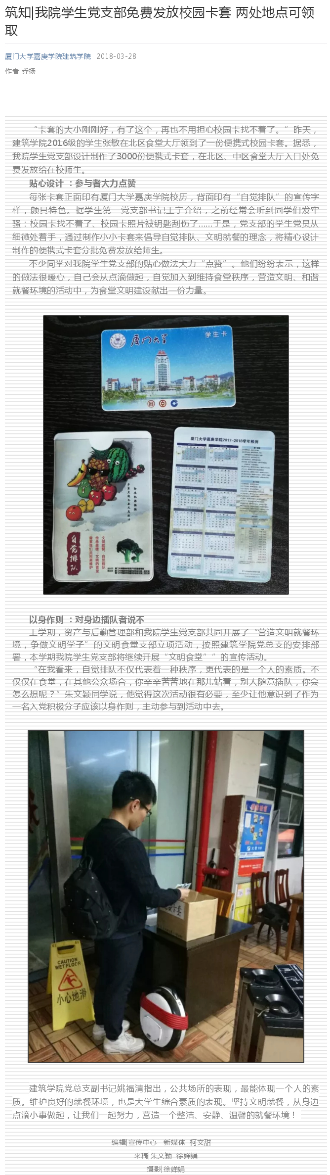 我院学生党支部免费发放校园卡套 两处地点可领取