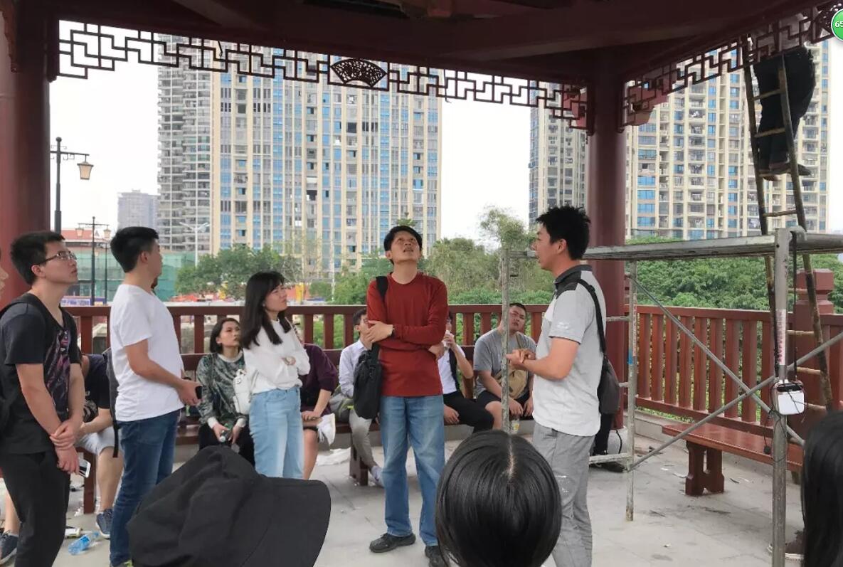 参观完新龙腾公司的展厅,厦大学子一行驱车前往漳州市古城、古桥(南山桥)、闽南水乡等部分工地参观学习。在新龙腾公司工作人员的讲解下,对闽南建筑的营造设计、牵庚定位、动土安基、大木制作、砌筑铺装、屋面出水、小木细雕、剪粘灰塑、油漆彩绘、贴金等营造流程的主要工序和技艺内容有了更直观、更深入的认识。