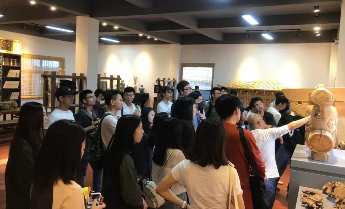 在新龙腾公司董事长周瑞丰的讲解下,同学们参观了展厅。通过展厅内展示的各类传统木作构件、泥水构件、石作构件、施工器具、图纸文献等1100余份展品,对于闽地古厝传统营造技艺有了进一步的理解。