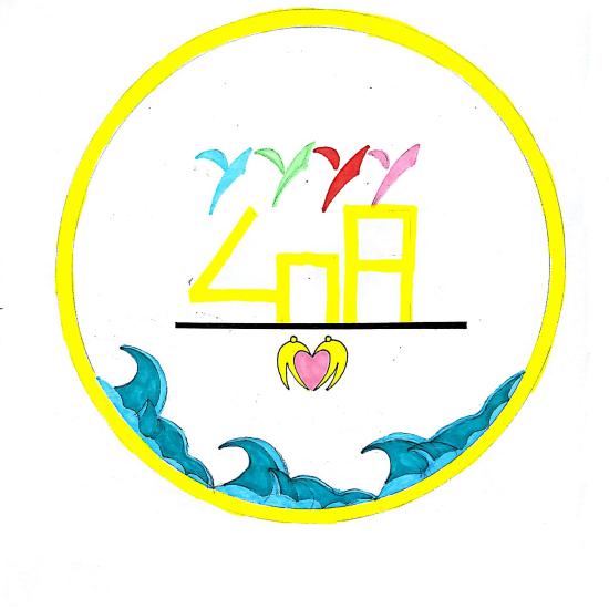 释意:中间为“408”宿舍,上方四棵小草,代表宿舍不同性格的四个人,一个内敛沉稳(蓝)、一个平易近人(绿)、一个热情大方(红)、一个温柔可爱(粉)。下方是两个人牵手形成了一个爱心,代表408宿舍团结互助,共同走过风风雨雨,体现了温馨和谐的氛围。黄色的圆环正是象征我们的未来一片光明,最底下的海浪寓意我们将乘风破浪,直挂云帆济沧海。