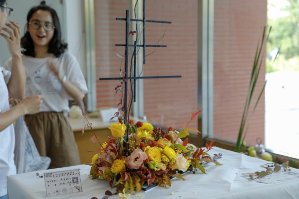 比赛的时间过得很快,经过九十分钟的激烈角逐,一件件美轮美奂、造型新颖奇特的花艺作品摆在了在同学们的眼前。在之后小组的答辩上,选手们向大家揭示了缤纷美丽的花艺作品背后的含义。评委老师们听了选手对所做出的作品的描述后,也给出了心中对花艺作品的相应分数。