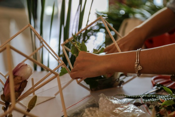 在主持人隆重介绍到场嘉宾、评委老师,宣读完比赛规则后,决赛正式拉开序幕。剪枝,插花,摆造型......20组选手动作麻利。将自己对嘉园的美好祝愿融入自己的花艺作品中,一花一叶都用来诠释着自己对嘉园的爱。比赛如火如荼进行的时候,现场的老师也按捺不住自己想参与活动的热情,走出评委席,来到参赛选手旁边,给出专业的指导,完善参赛选手的花艺创造。