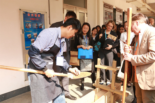 李鎨翰教授向世界人文学术会议嘉宾重现夯土工艺