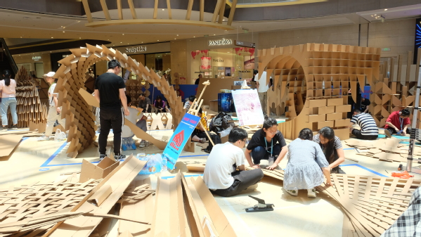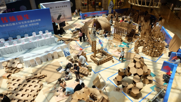 根据比赛规则,参赛团队必须在限定的时间里,通过团队合作,依靠专业能力,用不超过10张瓦楞纸,在划定的场地范围内搭建起一座占地面积不超过9平方米的“活动空间”。这个“小建筑”不仅要美观、有创意,还要有防风、抗压、通风采光的功能。
