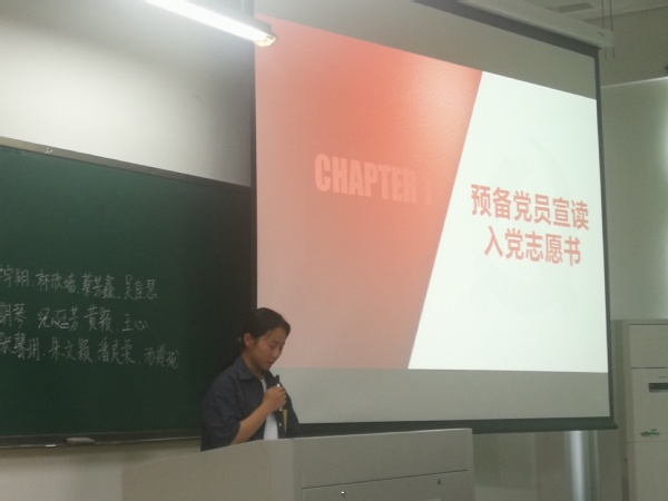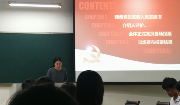 本次会议由学生党支部金精特同志主持。会议开始介绍了发展预备党员的相关流程。在主持人的组织下,卓宇翔,林欣墙等十二位同志先后上台宣读了各自的入党申请书,表达了自己对党的向往与入党的强烈意愿,展现了为共产主义事业奋斗终身的决心。他们都对自身的学习生活进行总结,找出了其中的不足之处并表示会在将来的学习生活中严格要求自己,坚定信念,改正自身的不足之处。