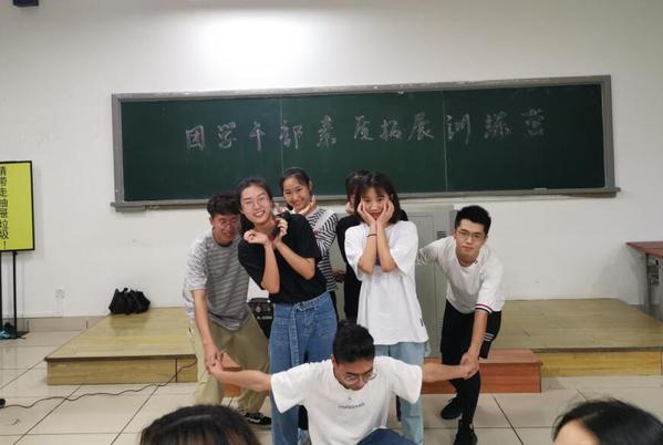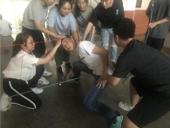 在之后的“穿越电网”游戏中,学员们以小组为单位,在不触线的前提下依次通过面前的网格障碍。该轮游戏不仅需要同学们发挥自己的聪明才智,更需要大家齐心协力共度难关。“电网”就如学生干部在工作中所面临的种种困难,只有学会合作,才能破茧而出。