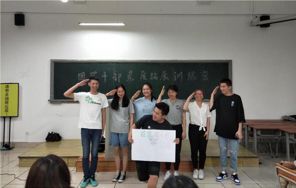 本次活动共设置三个游戏环节,分别为“我来想队名”、“穿越电网”和“撕名牌”。在活动的开始,为了更好地提高团队意识,学员们需要为自己所在的团队设计队名、团徽、口号,以及团队的专属姿势。在该过程中,同学们集思广益、积极讨论,为自己的队伍增添色彩。