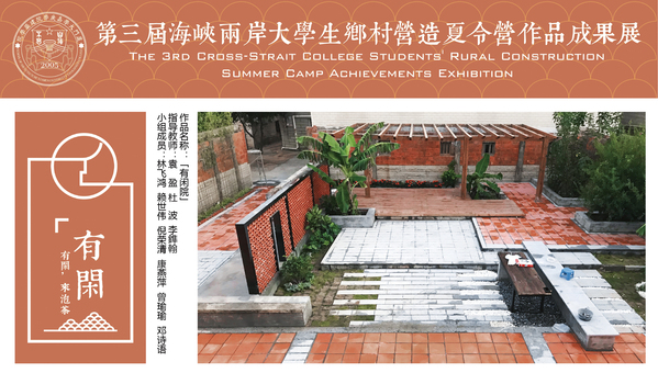 从七月中旬开始,建院师生在校进行了半个月高强度设计集训,经历了概念生成、方案讨论、深化图纸到完善定稿的过程,最终于8月1日由袁盈和杜波老师带队入驻晋江市龙湖镇内坑村。八月的晋江烈日炎炎,老师和同学们始终坚守工地第一线,事无巨细地指导工人将图纸转化为建造,甚至为了保证施工进度,所有人都亲自动手参与劳作,最终完成了“有闲院”、“栖语台”、逸木庭”、“篱南道”四组微景观作品。