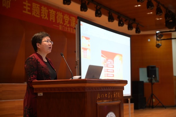第一部分为教工党支部书记微党课。首先,由我院副院长、教工党支部书记柳燕教授为我们带来了以“爱岗敬业,方得始终”为主题的微党课。她认为做一名教师只有牢记教育初心,践行教育使命,方得育人。柳燕教授对年轻教师提出了五点要求:要坚定理想信念;要对党忠诚、对工作忠诚;要敢于担当;要讲诚信;作风要务实。在平时教学过程中,老师只有脚踏实地、讲诚信,做到“以学生为中心”,一切为了学生,才能够在学生中树立威信,促进教育发展。作为学生,做到“不忘初心,牢记使命”的表现是端正学习态度、积极探索学习方法和培养毅力、自律的品质。柳燕教授还鼓励我院全体党员对习近平总书记提出的“乡村振兴战略”进行理论研究和实践探索,利用专业知识去改造农村,建立一个整洁、舒适、宜居的新农村。
