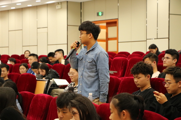 第三部分为互动交流。本次微党课的歌唱和话剧表演得到了师生们的一致好评,同学们也从本次的专题汇报大会中获得正能量。教工党员表示作为一名教师要“不忘初心,牢记使命”,把教育当成事业,平时多参与学生活动,融入到学生的学习和生活中,希望当代大学生不受网络“丧”文化的影响,要从自身做起,保持积极的人生态度。