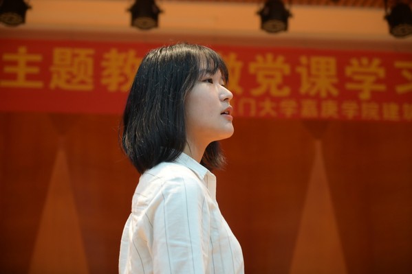 第二部分为学生党支部微党课。学生党员给大家带来了歌曲《千山万水》、《我和我的祖国》。其中,话剧《绣红旗》的表演调动了现场气氛,让大家以一种新颖的方式学习党的文化和历史,增强大家的爱国主义情怀。