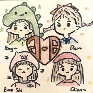 释意:logo正中间,醒目的大字简单明了,字体带一点俏皮的风格,展现了我们宿舍的可爱气息。周围我们采用的是宿舍成员的个人特征和穿衣风格来凸显我们的个性特征,然而“407”中的“0”字中间的笑脸展现出:虽然风格各有不同、来自不同的城市还有性格不一样的我们,但是却能够玩到一起并且特别开心,或许是价值观念、心态的相似,这就是我们的宿舍文化所在!
