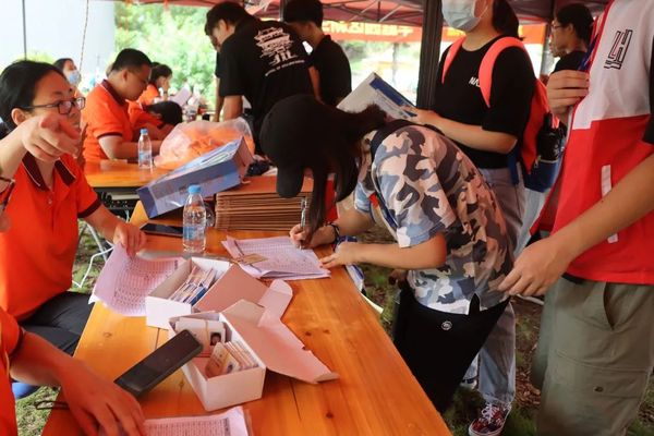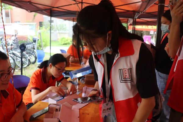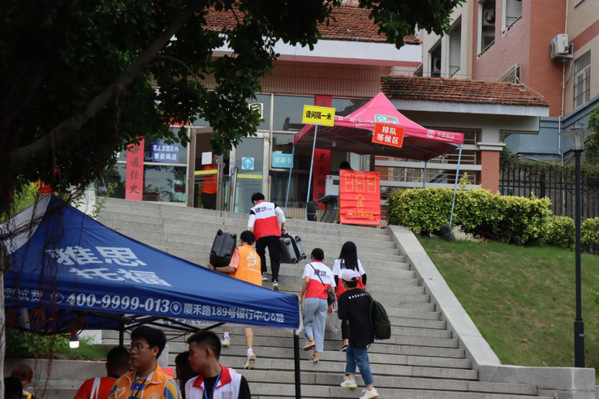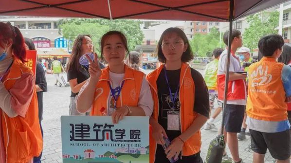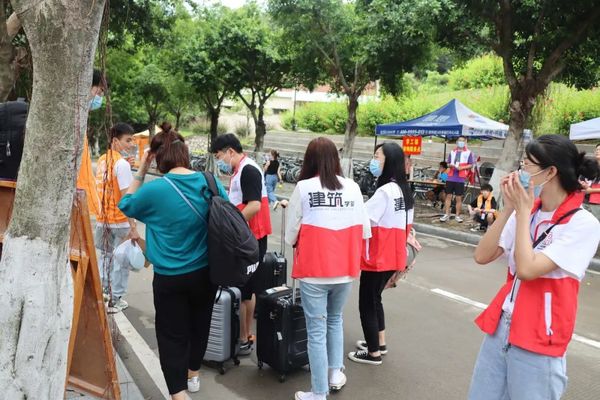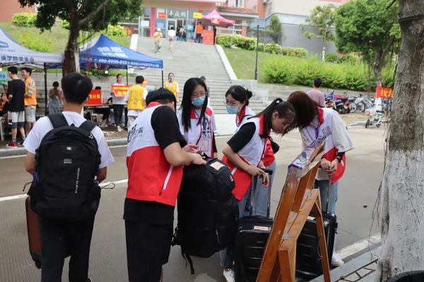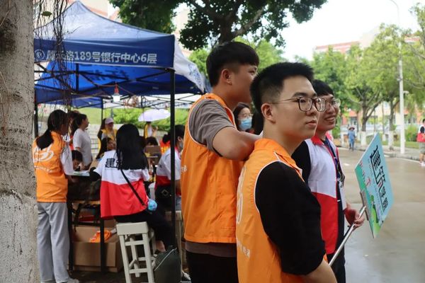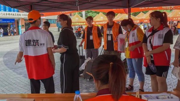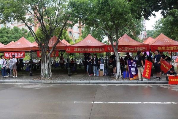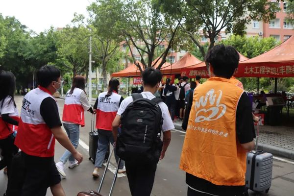 随着前几日老生的陆续返校 学长学姐们昂扬着斗志 等待着直系萌新们的到来 园区旁 宿舍里 绿荫下 随处可见他们的身影 红色的小马甲穿梭在校园的各处 尽管天气有些燥热 忽而阵雨也与我们来了个亲密接触 但志愿者们依然热情不减