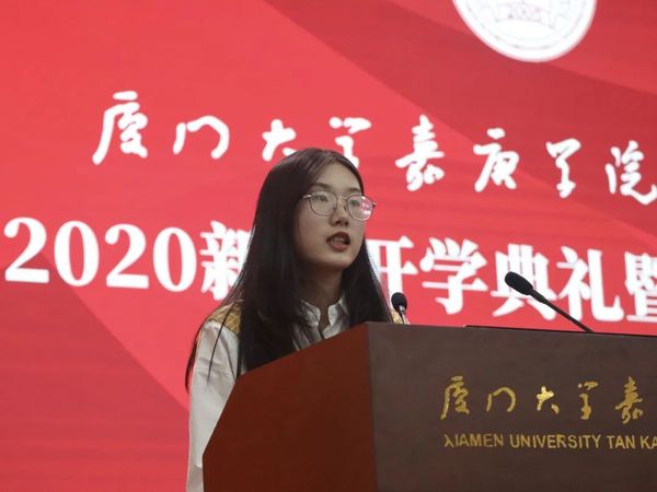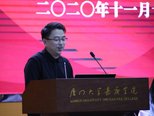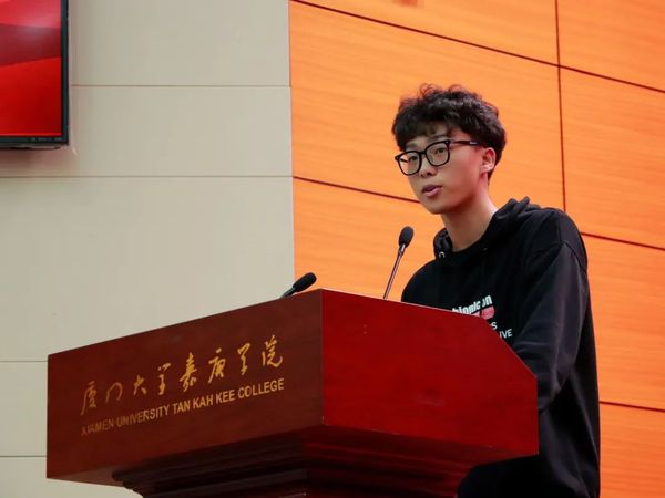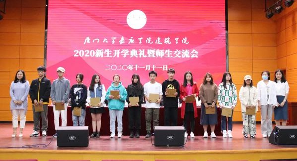 在颁发完奖品之后,2020级建筑学(2)班的陈泽霖同学作为新生代表向大家谈了谈他对于这一段时间的学习生活的感触。