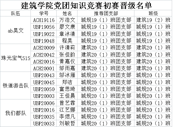 为深入贯彻习近平新时代中国特色社会主义思想,引导广大团员青年学习习近平总书记在党史学习教育动员大会上的重要讲话,落实团中央“学党史、强信念、跟党走”的要求,庆祝中国共产党建党100周年,由我院党总支和团委共同主办的2021年“忆峥嵘岁月,庆建党百年”党团知识竞赛初赛于2021年5月22日圆满结束。根据比赛规则,共有4支队伍进入决赛,现予公示。