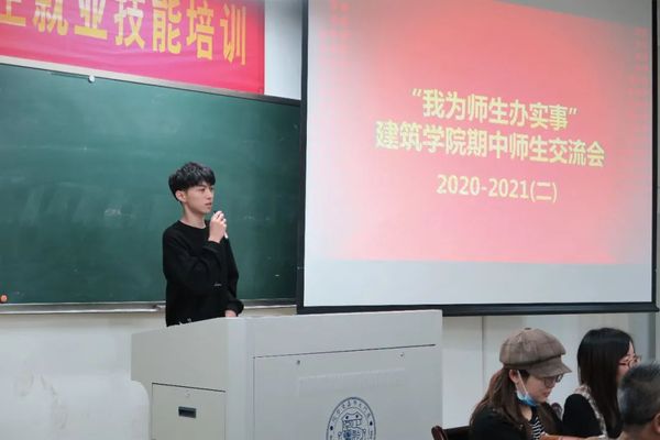 随后各年级各专业在场学生进行踊跃发言,指出自己在学习和生活中发现的问题,主要围绕在实践周、快题、宿舍安排、班级学习氛围、专教管理等方面进行提问。