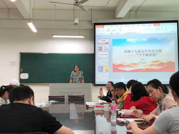 党课最后,苏丽华书记说十九届五中全会描绘了一幅波澜壮阔的崭新画卷,作为教职工党员,我们既要深刻认识党和国家当前所处的历史方位,更要清醒地认识到高等教育改革发展所面临的新形势、新机遇和新挑战,把个人的前途同祖国民族的复兴大任联系起来,在新征程中贡献力量。