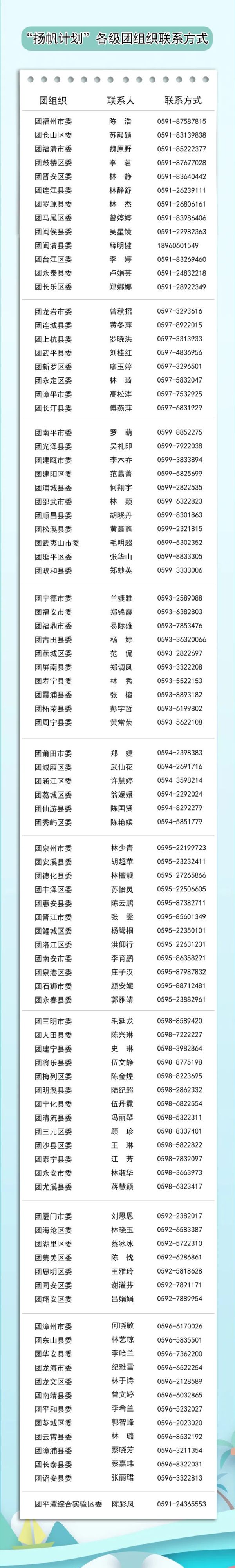“扬帆计划”各级团组织联系方式