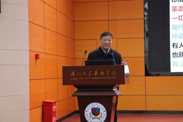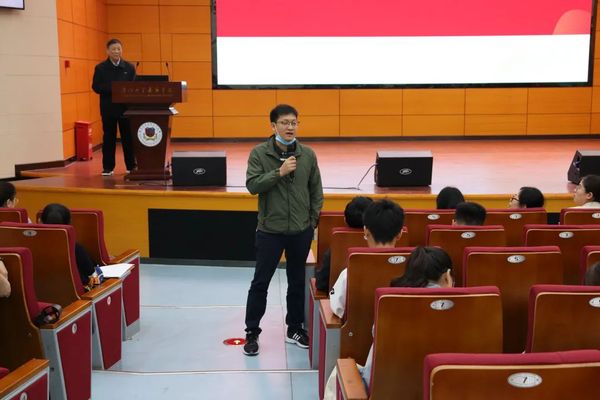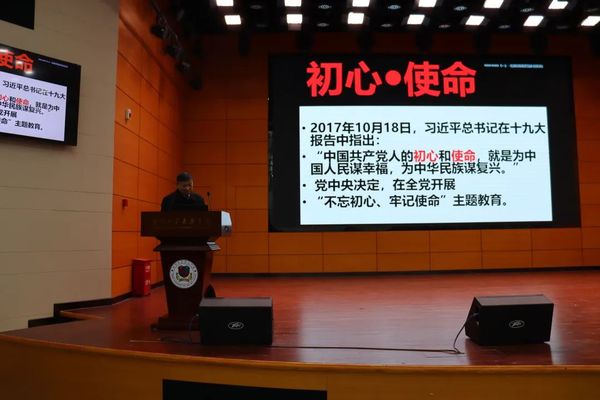 陈院长以“不忘初心、牢记使命”这一主题作为演讲的开场。正如陈院长所言:“我们高中时的初心既是通过不断的学习考上大学;而使命便是‘走上社会,适应社会,服务社会’使命就是社会的责任和历史的担当。”与此同时陈院长还提出了“社会化”。革命导师马克思说:” 人的本质并不是单个人所具有的抽象物,在其现实性上,是一切社会关系的总和。”陈院长也主张师生互动、共同成长的“使命感’,而不赞赏这种学习动力的“兴趣论”。
