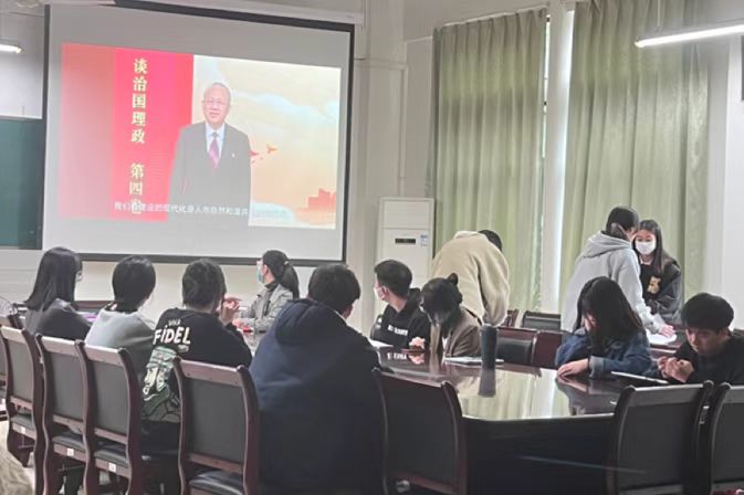 为强化党员对习近平新时代中国特色社会主义思想的学习,提高理论知识学习能力。2022年 12月 7日中午 13:00,我院学生党支部在主五#207会议室组织学习《习近平谈治国理政》第四卷:坚持人与自然和谐共生。学习会由我院党建指导老师唐磊老师主持,我院学生党员参加学习。