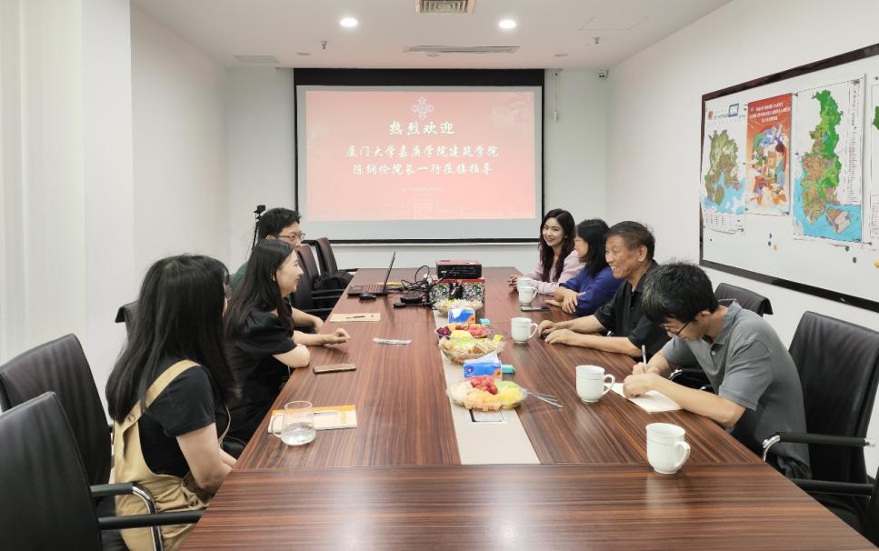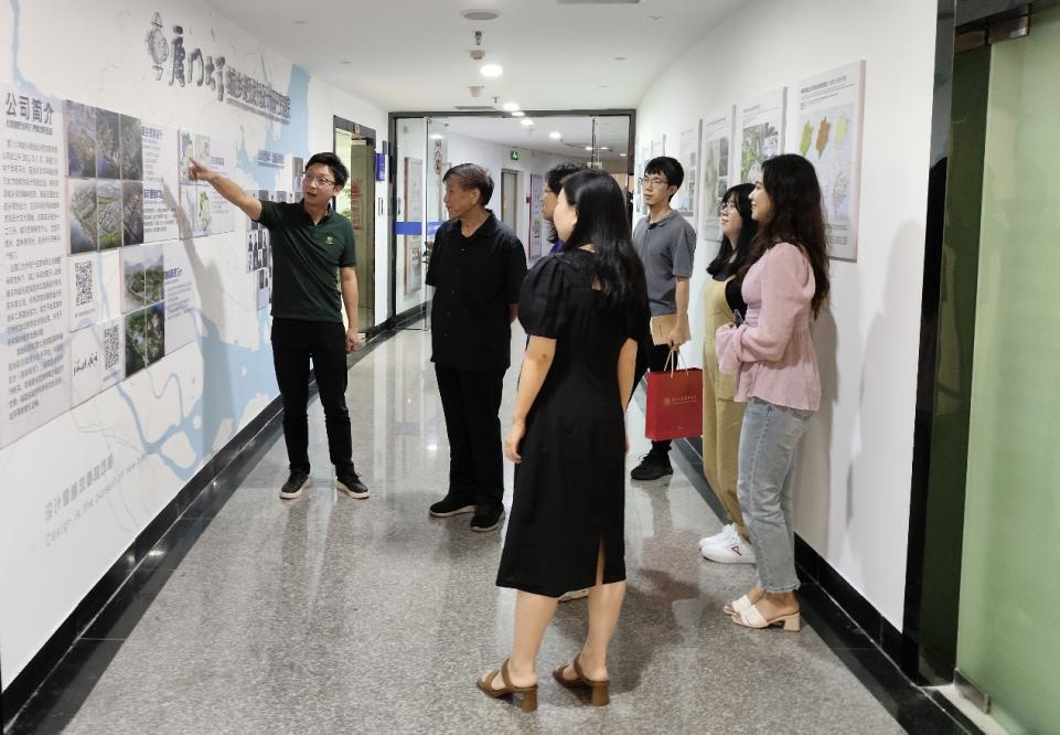随后,陈纲伦一行走访厦门大学城乡规划设计研究院有限公司。城市更新中心负责人张力和规划二所所长罗春伟热情接待了我院调研团,分别对公司的建设历程、组织架构、主营业务、项目成果等进行了多维度、深入性的讲解,并一同带领大家参观了办公环境和活动空间,感受企业文化氛围。陈纲伦代表我院感谢企业方的接待,期待今后能与企业增进对话,拓宽学生项目实践领域,培养更多符合市场需求的人才。双方就当前城乡规划学科建设、行业发展、专业研究等方面进行了细致研讨,并就合作前景展开探讨。双方期望充分发挥厦门大学的平台优势,在人才培养、实习就业等方面建立多元合作机制,探索长效合作模式。