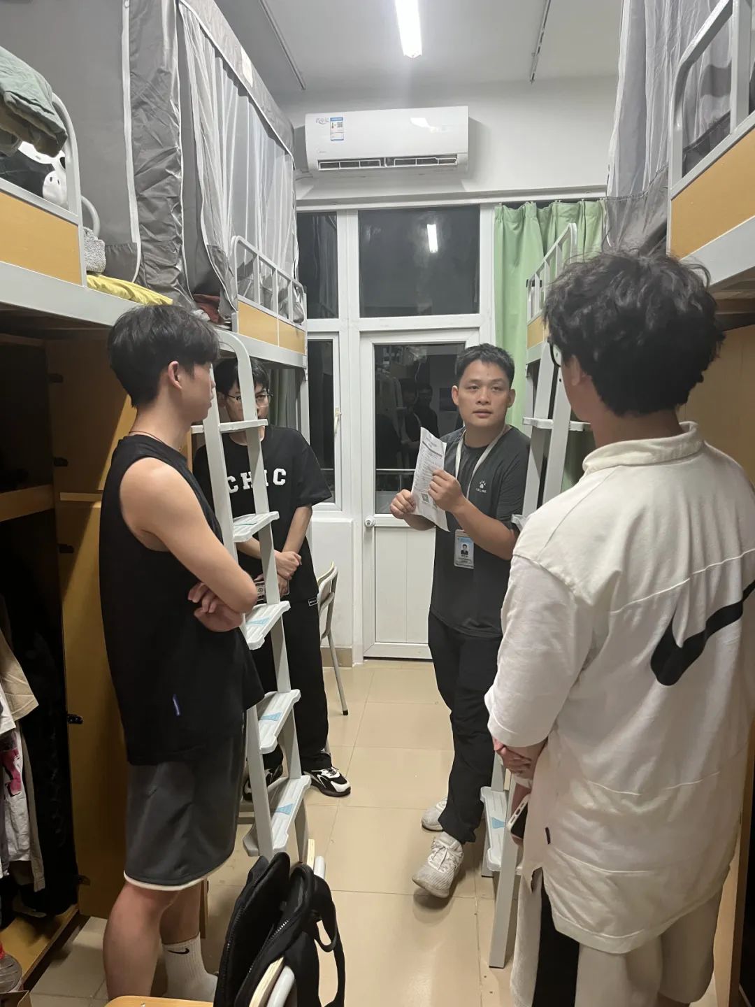 为进一步了解新生住宿和生活情况,帮助新生快速融入集体,8月25日当晚,各班的辅导员老师以及学生助理开展了新生宿舍走访行动,为入住“嘉园”的小萌新们答疑解惑。