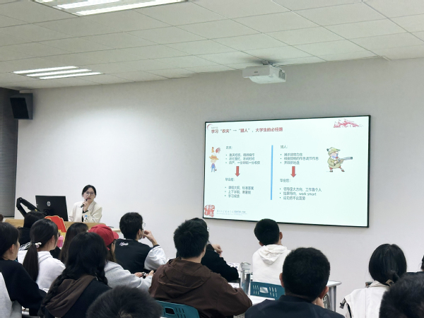 李老师以“学习‘农夫’→‘猎人’,大学生进阶术”为题,以“税务局和建筑学专业有什么关系?”开篇提问,结合学校和我院近年的就业去向、自己的工作经历和经验、典型校友的就业案例为论据,循序渐进的为学员们剖析如何做好职业规划,帮助同学们更好的了解当前的就业环境以及未来的就业趋势,提醒学员们要把握“点亮”未来的几个“火把”。最后李园园老师勉励学员们:“生涯可以被‘点亮’,但路一定是一步一步走出来的!”也让学员们明白了人生的路需要自己走出精彩,要将想法变为行动才是一份有效的职业生涯规划。
