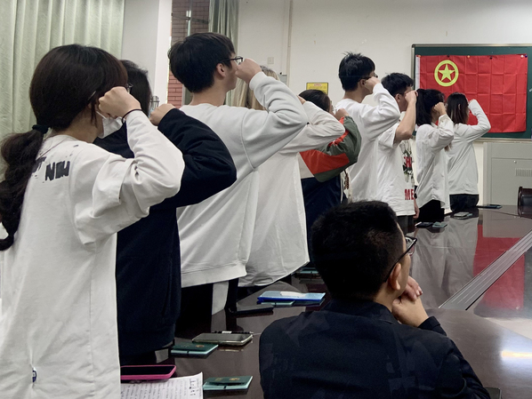 在团员代表王牧溪的带领下,团员们举起右拳,以最洪亮的声音进行庄严宣誓,以最赤诚的热情表明态度和决心。在鲜红的团旗背景下,此刻的宣誓将激励团员们在今后的学习、工作以及生活中不断向前迈进。宣誓完毕后,团务中心组织部带领新团员们学习了《团章》中有关团员的义务与权力的条款。