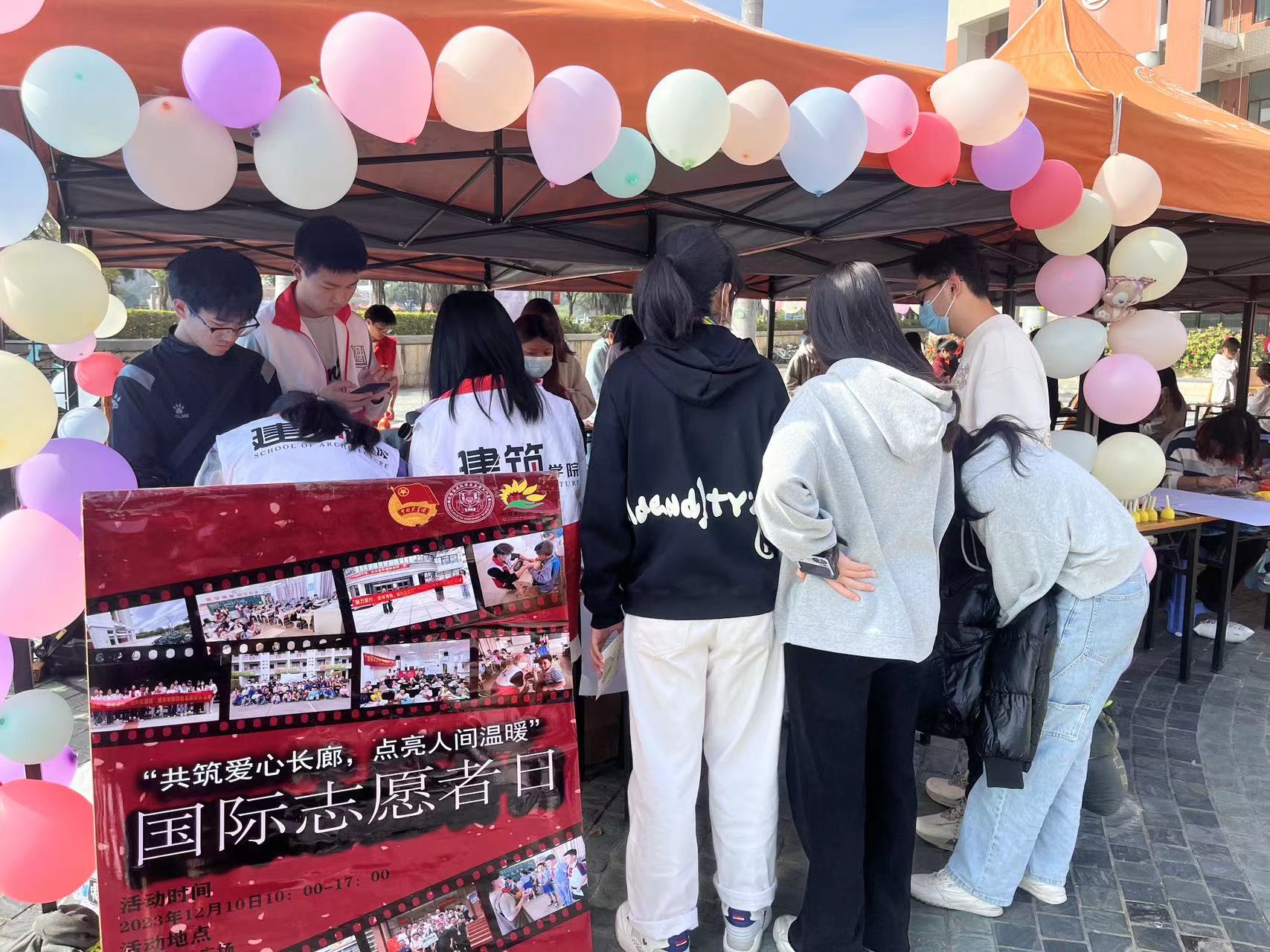 为了展示我院青年良好形象,积极倡导大学生志愿者们践行“奉献、友爱、互助、诚信”的精神,2023年12月10日,我院在北区南强广场开展“共筑爱心长廊,点亮人间温暖”12·5国际志愿者日活动。
