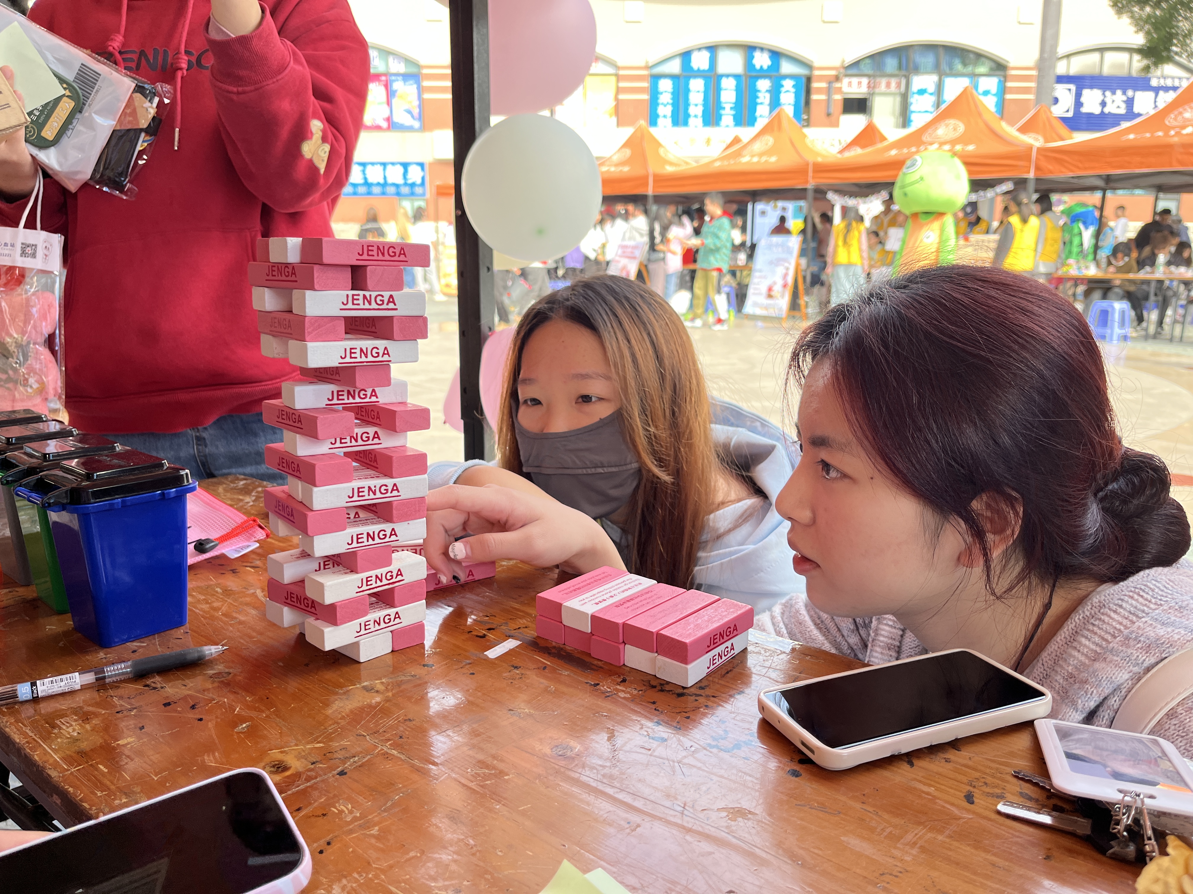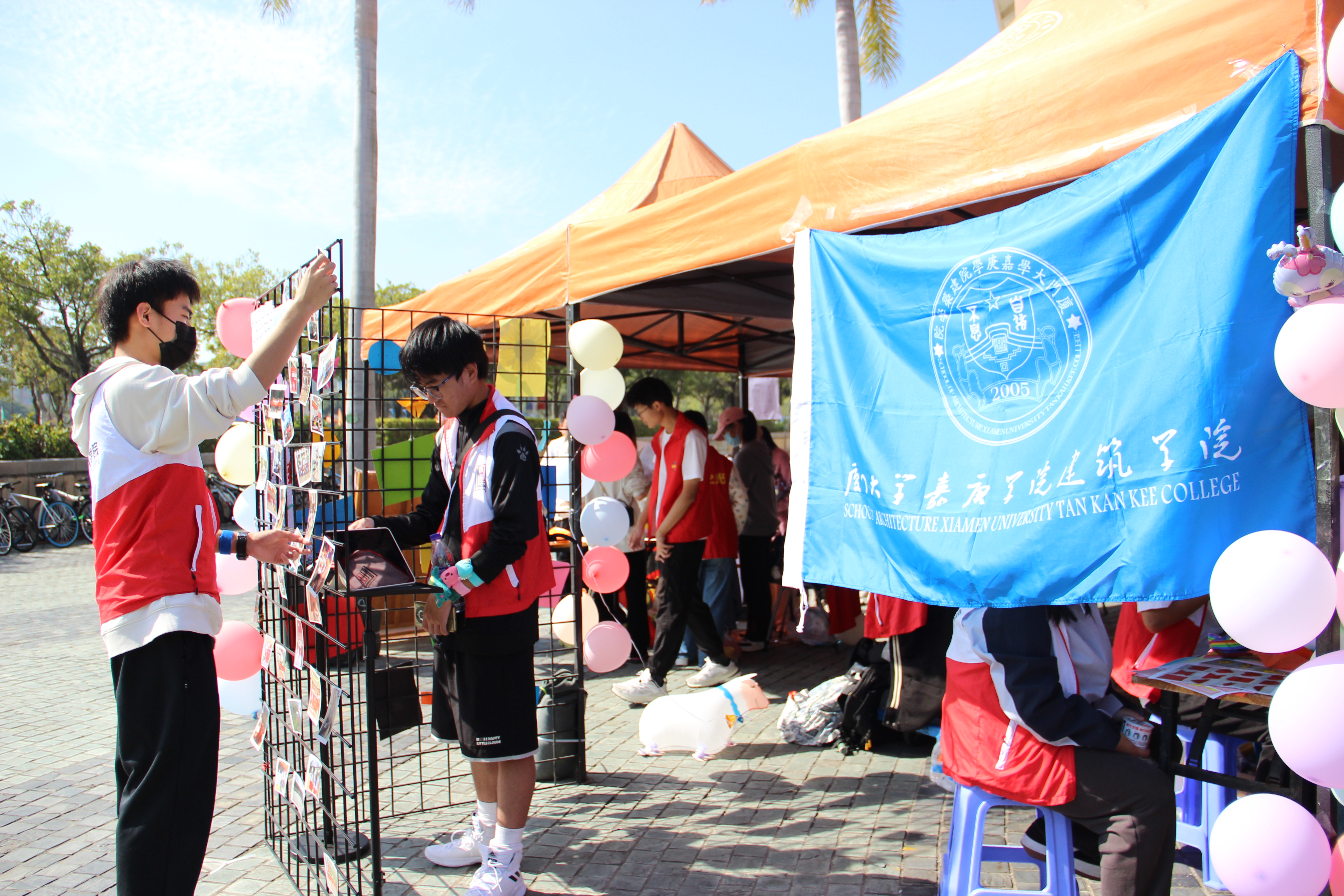 活动现场人头攒动、秩序井然、志愿者分工明确。我院以新颖的志愿服务相关活动吸引现场的参观者,参与者在活动中以知识竞赛的方式了解和掌握了志愿服务相关的知识,通过垃圾分类小道具让参与者在游戏过程中学习到垃圾分类相关知识,并将学习到的知识运用于日常生活中。参与者通过搭建、抽取积木的方式完成游戏,了解建筑结构的稳定性以及体验建院学子的日常生活。参与者利用画笔等工具在银杏叶上进行创作,设计一枚属于自己的“秋”之书签,切身体验到独属于我院的浪漫。同时,鼓励参与者给我院支教的小学——田头小学的学生们书写寄语,表达一份真挚的“嘉”人的爱。