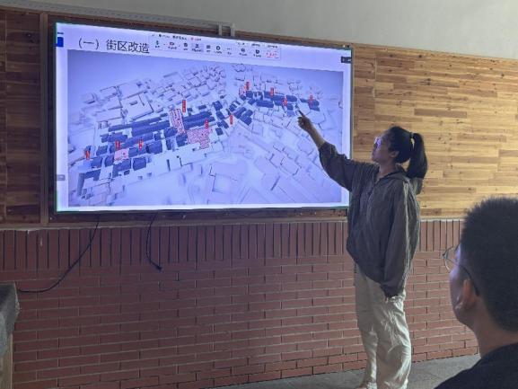 在活动现场,七组古街更新设计方案依次汇报,同学们的设计充分考虑了场地现状与建筑遗存,以创新的想法和扎实的技术图纸呈现了两个月以来所完成的设计成果。各组汇报从项目背景、场地信息、概念分析、城市设计和建筑单体设计等多个方面进行了十分详细的讲解,其中有延续传统的门市设计,也有融入现代化的沉浸式场景营造、盲盒概念、慢生活理念等设计想法的方案。