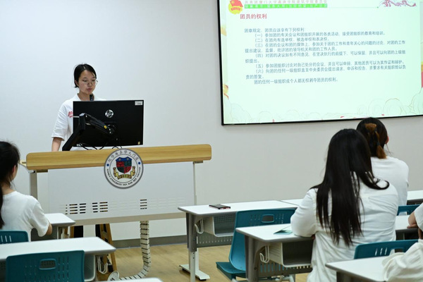 入团宣誓环节中,在团务中心主席团成员柯雨晨带领下,新团员们用整齐的声音表达了他们对团组织的忠诚以及为国家、为人民贡献青春力量的坚定决心。宣誓结束后,组织部部长简敏对共青团的历史、宗旨及团员的责任和义务进行了详细解读。通过对团章的学习,新老团员对共青团有了更深入的理解,增强了作为团员的责任感和荣誉感。