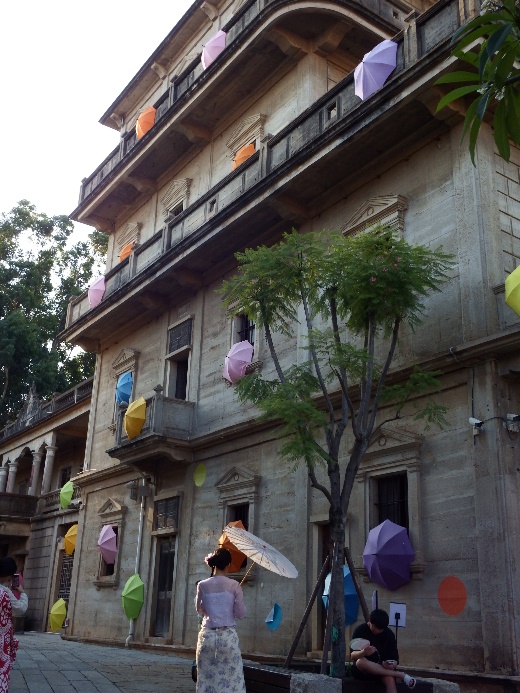 雨伞装饰下的建筑外墙