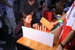 在“瑞气烛影”游戏环节中,当同学们用一句句中气十足的祝福语吹灭蜡烛的时候,也送出了对国与“嘉”的最美好祝福。