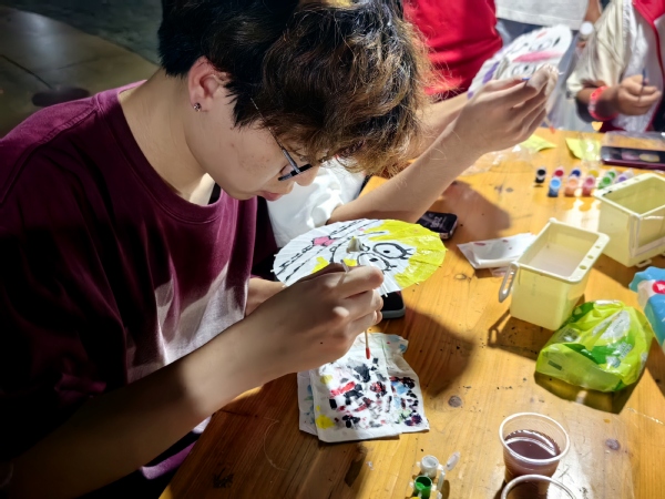 同学们通过游戏获得“钱币”后,可以兑换成美食体验券和传统手工艺作品体验材料包。在“云絮糖梦”体验区,同学们亲手制作出一朵朵绵软香甜的棉花糖,既满足了味蕾的享受,又收获了满满的快乐与成就感。而在“扇绘漆华”体验区,同学们则通过制作漆扇和漆画书签,深入感受中国传统工艺的独特魅力与精湛技艺。