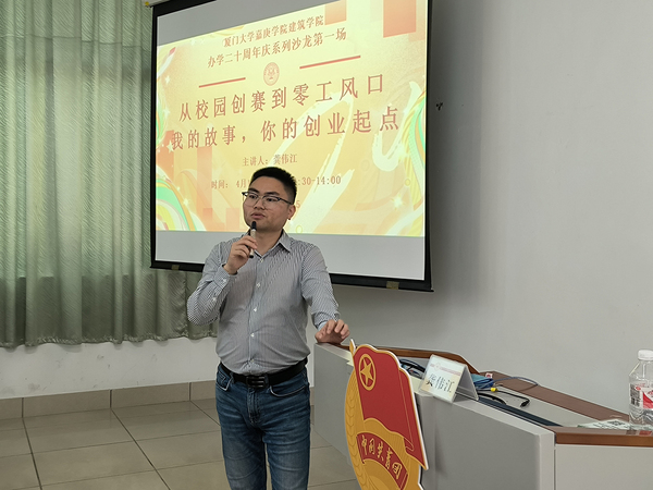 为深化团学干部对创新创业的认知,强化实践能力,4月15日,我院第五期“青马工程”暨第八期“无奋斗,不青春”团学干部素质拓展训练营暨庆祝我院办学二十周年系列沙龙活动在公1#215举行“创新创业”主题沙龙,厦门小橙兄弟科技有限公司创始人、总经理龚伟江受邀担任主讲嘉宾,他结合自身创业实践与企业管理经验,为学员带来了一场兼具理论与实操的分享。