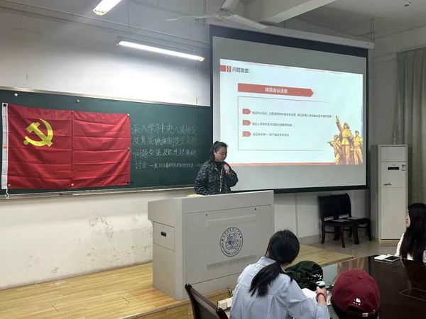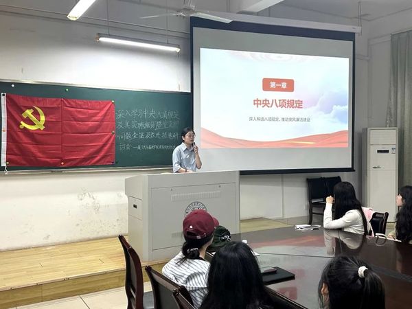 会上,陈弈含老师传达了党中央关于开展深入贯彻中央八项规定精神学习教育的重要决策部署,强调了此次学习教育对于巩固拓展学习贯彻习近平新时代中国特色社会主义思想主题教育成果、纵深推进全面从严治党的重要意义。她指出,要领会八项规定的深刻内涵和精神实质,深刻领会改进工作作风、密切联系群众的重要意义,切实在日常生活中落实八项规定,以良好的党风带作风促民风。