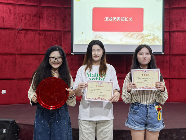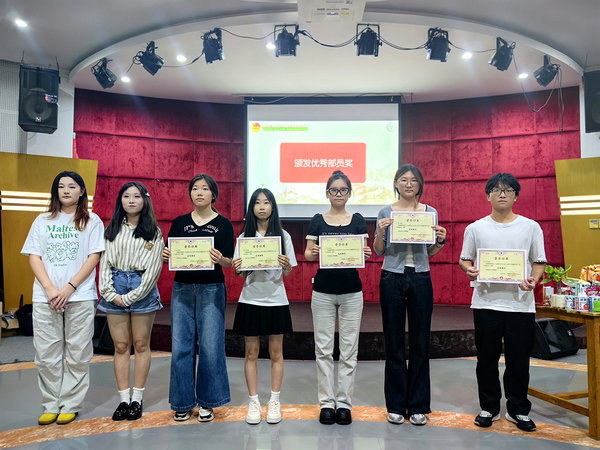 随后,大会对过去一年表现突出的先进工作人员进行了表彰。章芯羽、张高丽两人获得“优秀部长”荣誉称号,许凌峥等5名成员获得“优秀部员”荣誉称号。紧接着,“优秀部长”和“优秀部员”代表依次发言,他们分享了自己在团务中心工作中的成长与收获,表达了对团队的热爱与不舍。发言过程中,现场不时响起阵阵掌声,大家在交流中相互学习、共同进步。